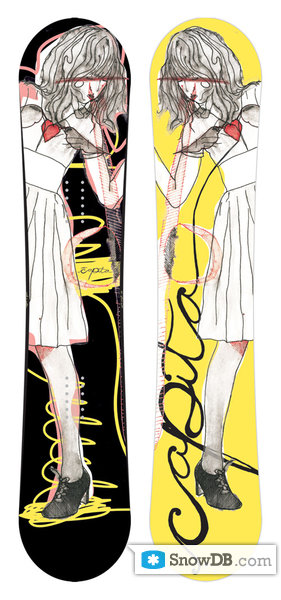 STORY We try over and over again, bloody knees and tears. Eventually something clicks. Our hearts glow and we know exactly what to do to make things right. CREATION THEORY Light, strong, and easy to ride through variable terrain, these boards were engineered for women who know how to ride but don’t want a board that will try to ride them. The sidewall construction provides stability while the carbon enhanced glass and lightweight core matrix provide power and precision to the progressive freestyle female rider. For 09 the graphics were hand drawn by our own TJ Schneider.